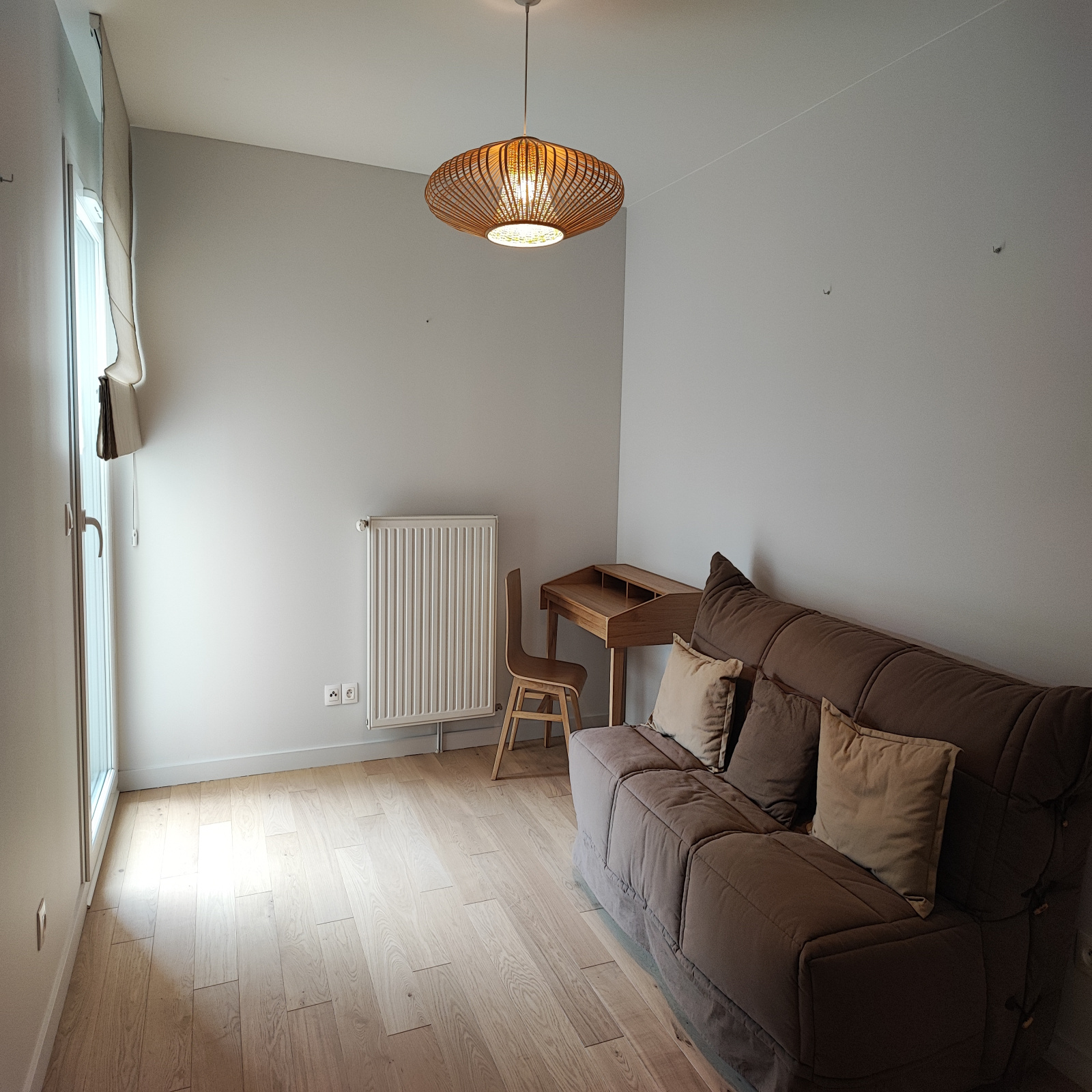 Dès l’entrée, vous serez séduit par un espace accueillant desservant deux grandes chambres avec placards intégrés, une salle d’eau moderne avec un élégant sol en béton ciré, ainsi que des WC séparés.