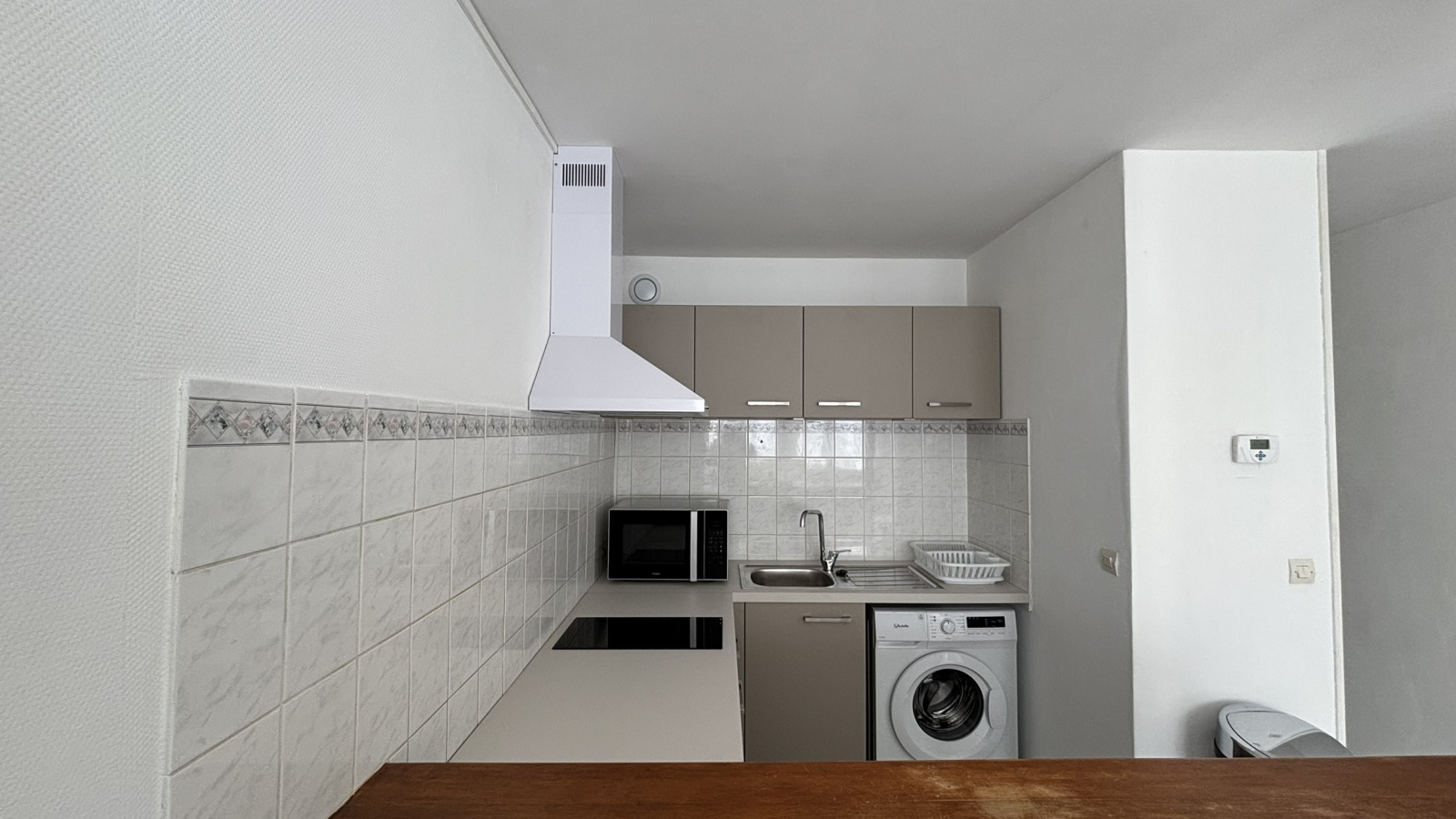 Appartement comprenant une entrée, un coin cuisine cuisine, un séjour-chambre, une salle de bains, un WC.