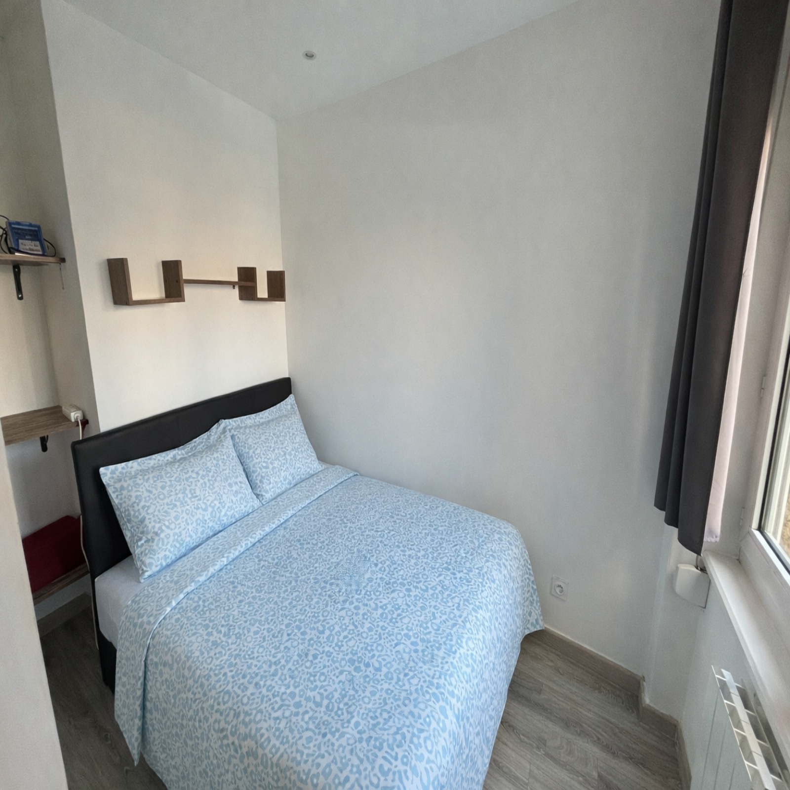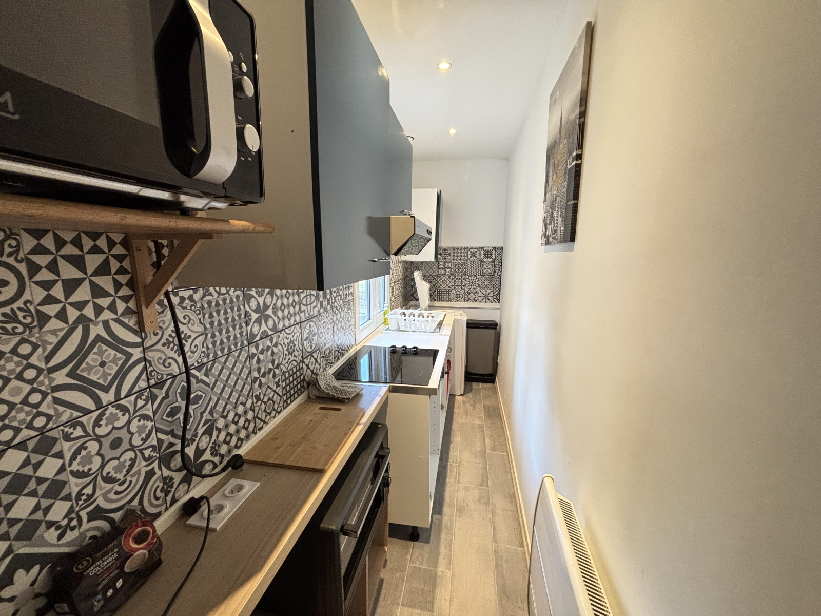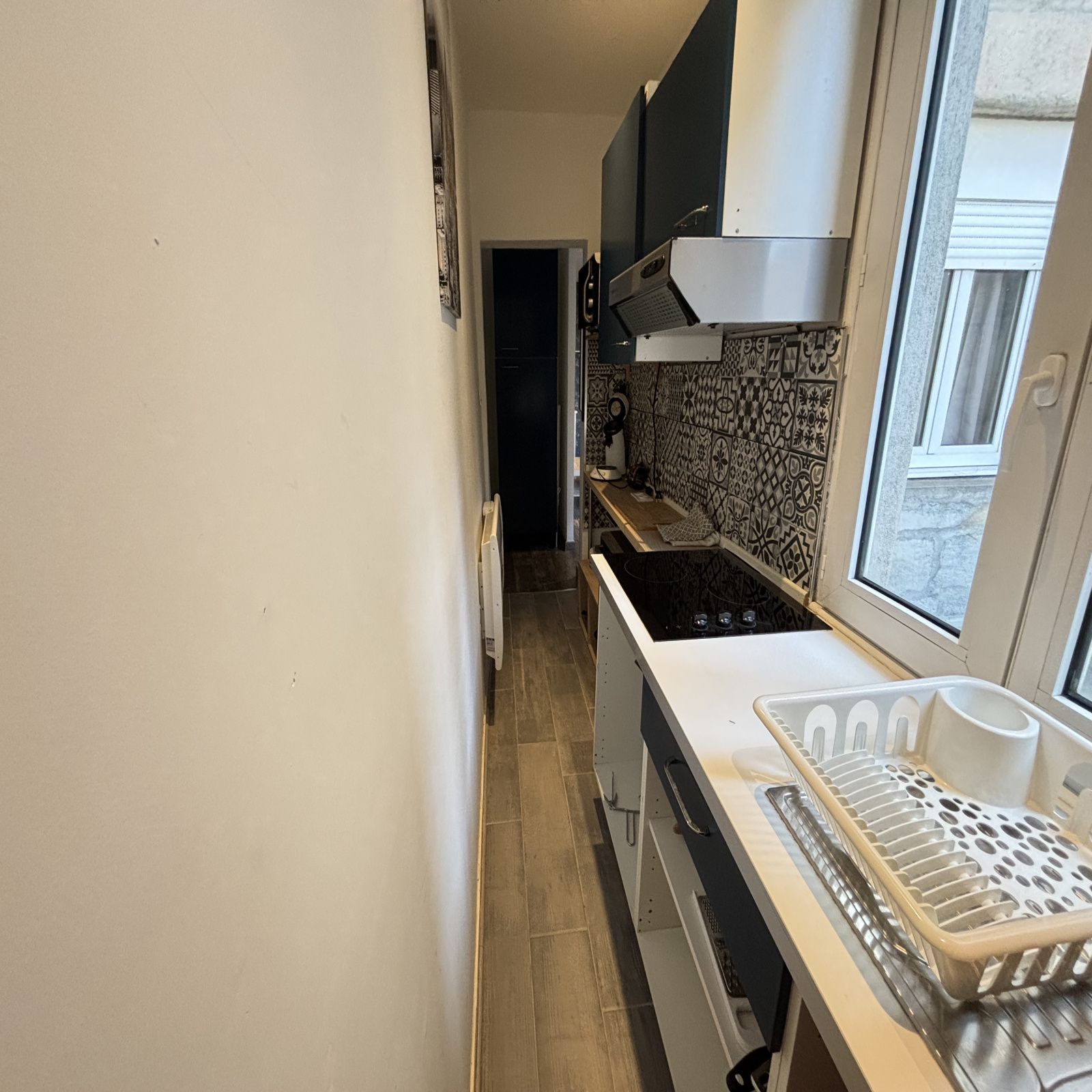 L’appartement donne côté cour, offrant ainsi un environnement calme en plein centre-ville.